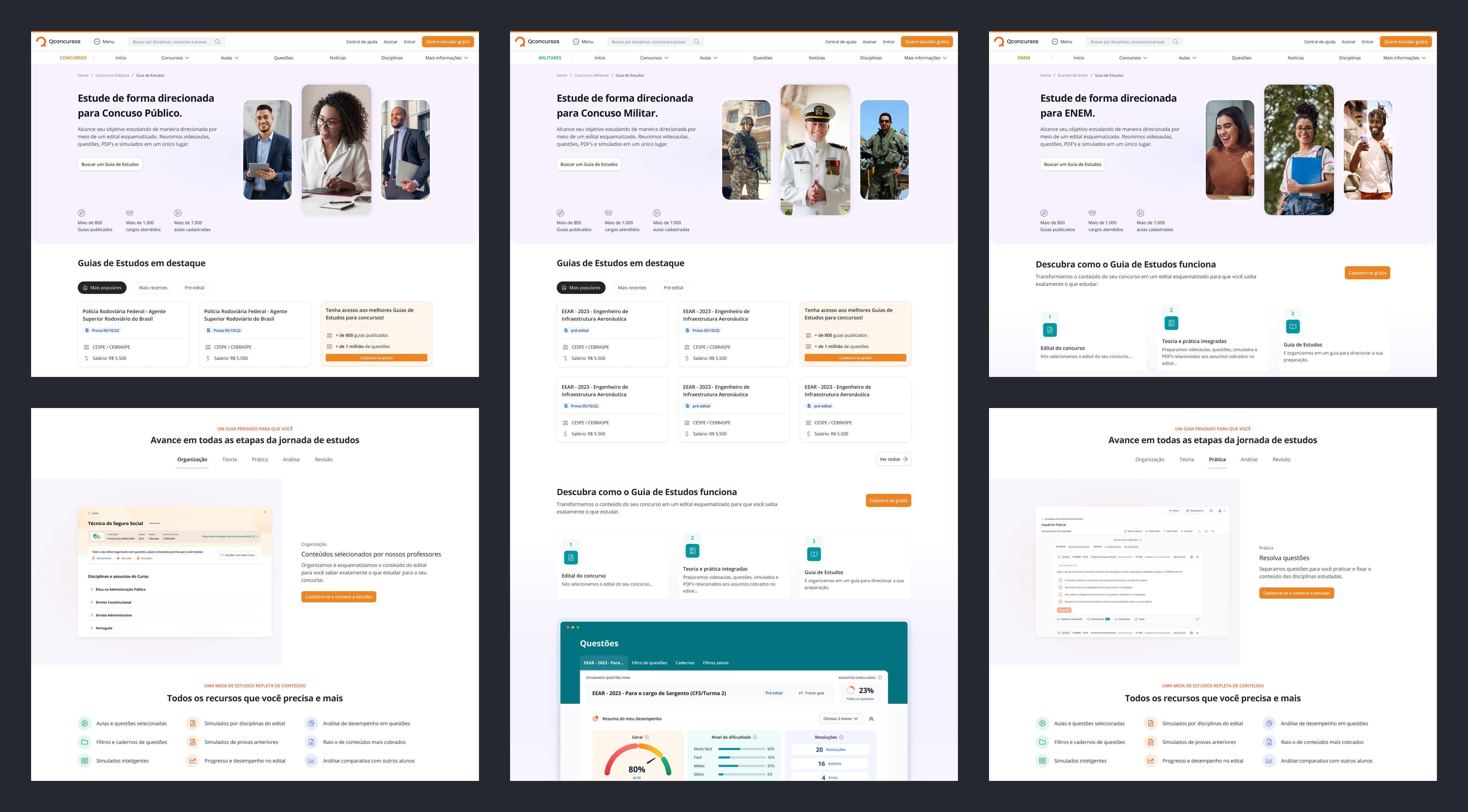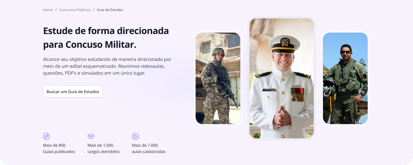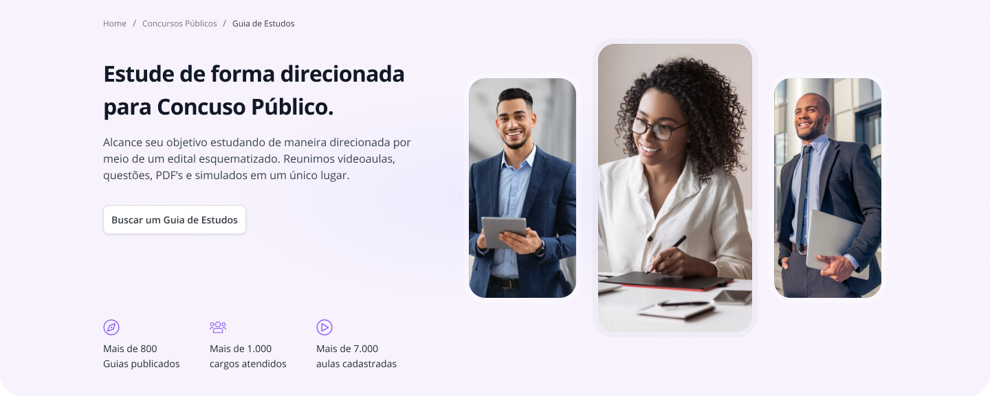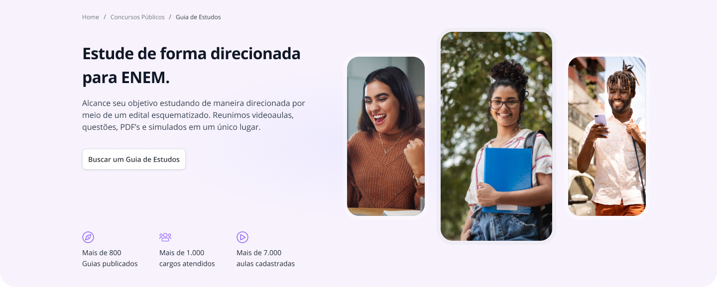 O nosso objetivo era garantir que esse processo fosse o mais simples possível, buscando também antecipar a navegação por cada um desses guias de estudos.