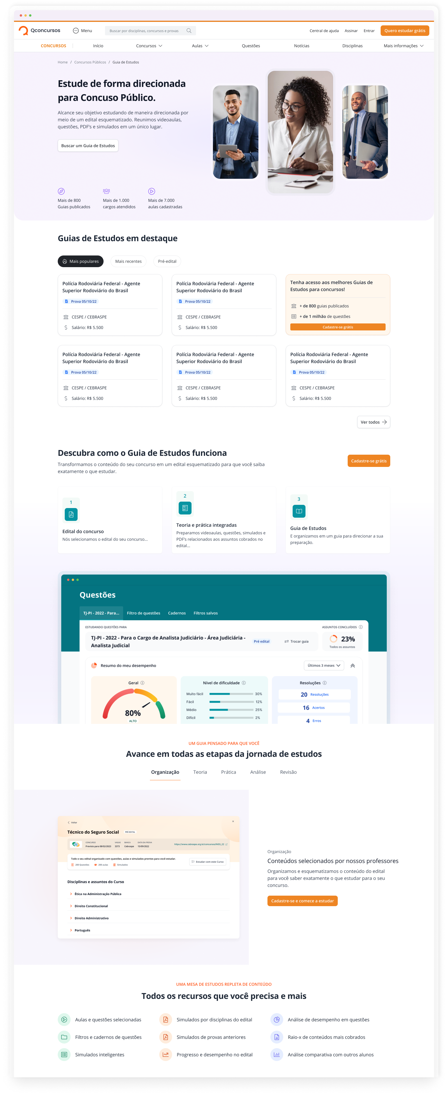 Qconcursos is an EdTech that makes preparing for public tender more pratical, through a digital environment that integrates all stages of study and directs what the person needs to study, pointing out solutions that enhance their performance.
