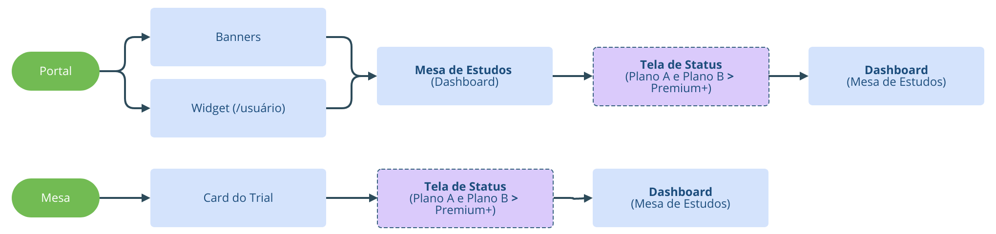 — A comunicação de ativação do Trial deve estar disponível nas duas versões do ambiente de estudos;